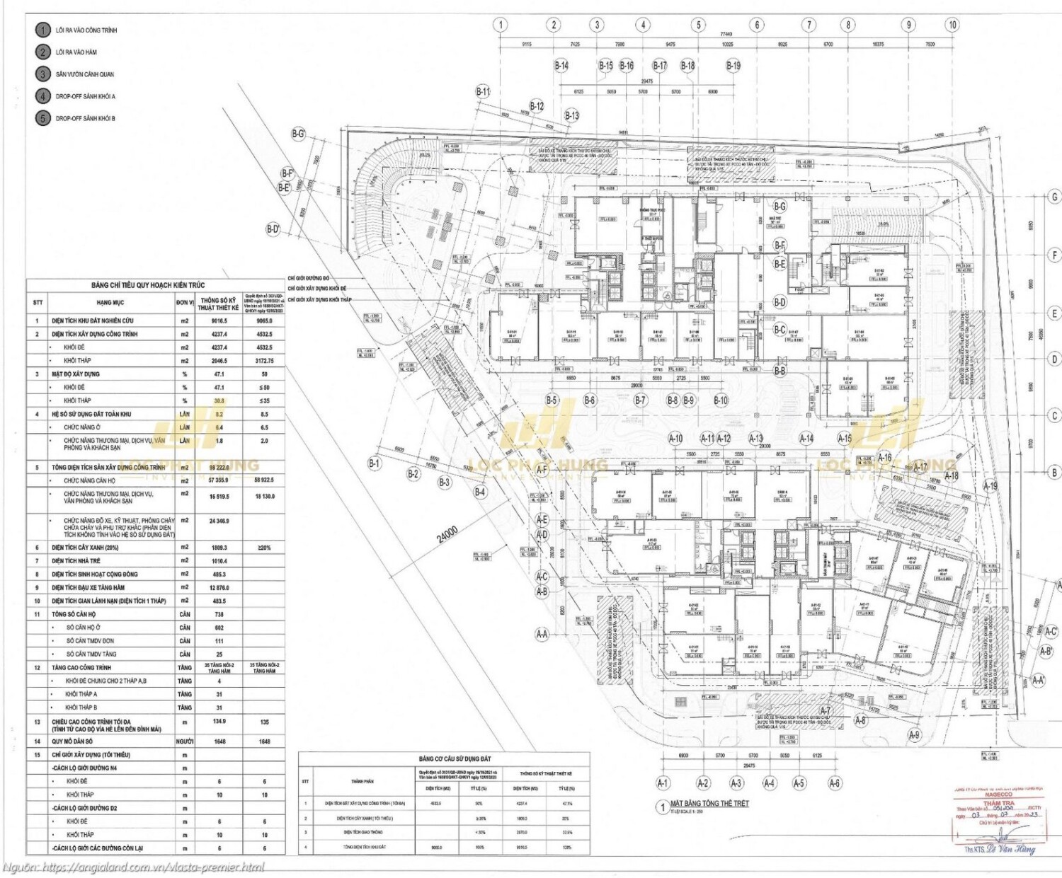 | Mật độ xây dựng | Khối đế: 47,1% – Khối tháp: 30,8% |