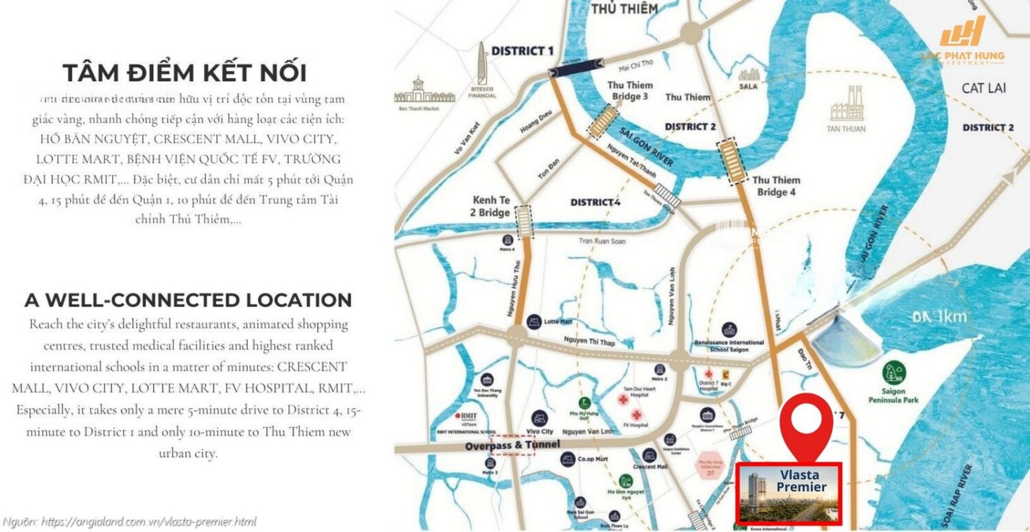 Nhờ tọa lạc tại tọa độ vàng của Quận 7, cư dân Vlasta Premier dễ dàng kết nối với mạng lưới tiện ích ngoại khu tiêu chuẩn quốc tế hiện hữu xung quanh: