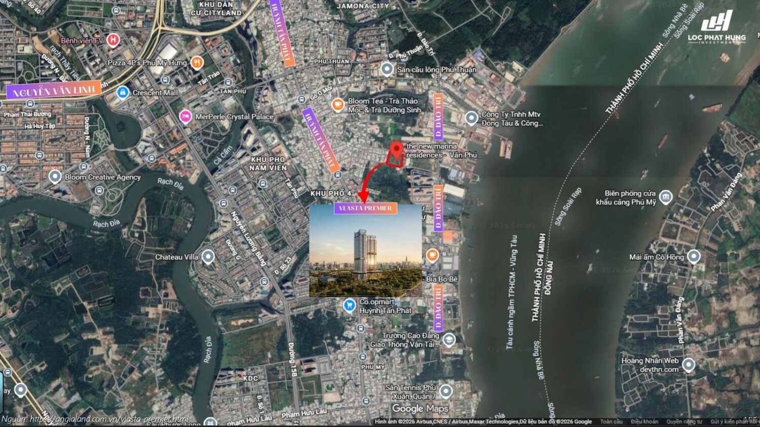Trong lĩnh vực bất động sản, vị trí không chỉ xác định địa chỉ mà còn khẳng định vị thế của chủ nhân. Vlasta Premier tự hào chiếm lĩnh “tọa độ giao thoa” ngay mặt tiền đường Đào Trí, Phường Phú Thuận, Quận 7 – nơi dòng chảy sông Sài Gòn hiền hòa gặp gỡ nhịp sống đô thị sôi động. Với ưu thế mặt tiền sông rộng lớn, dự án mang lại một đặc quyền sống xanh giữa lòng phố thị, nơi mà mỗi bước chân đều kết nối với thiên nhiên và mỗi tầm nhìn đều mang lại giá trị gia tăng bền vững theo thời gian giữa lòng các chung cư Quận 7