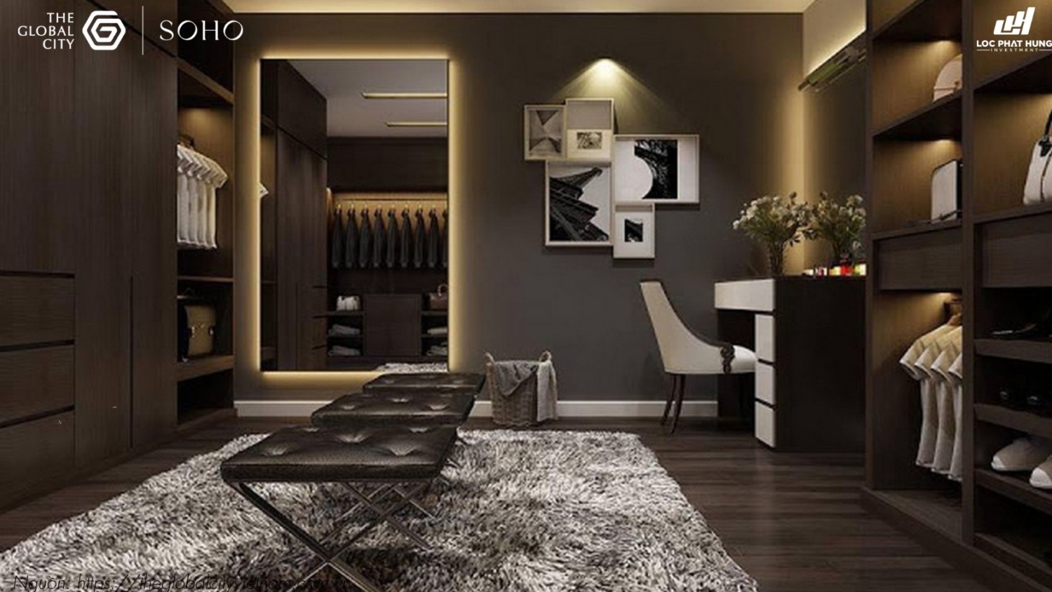 Không gian phòng thay đồ đẳng cấp tại Shophouse SOHO – The Global City