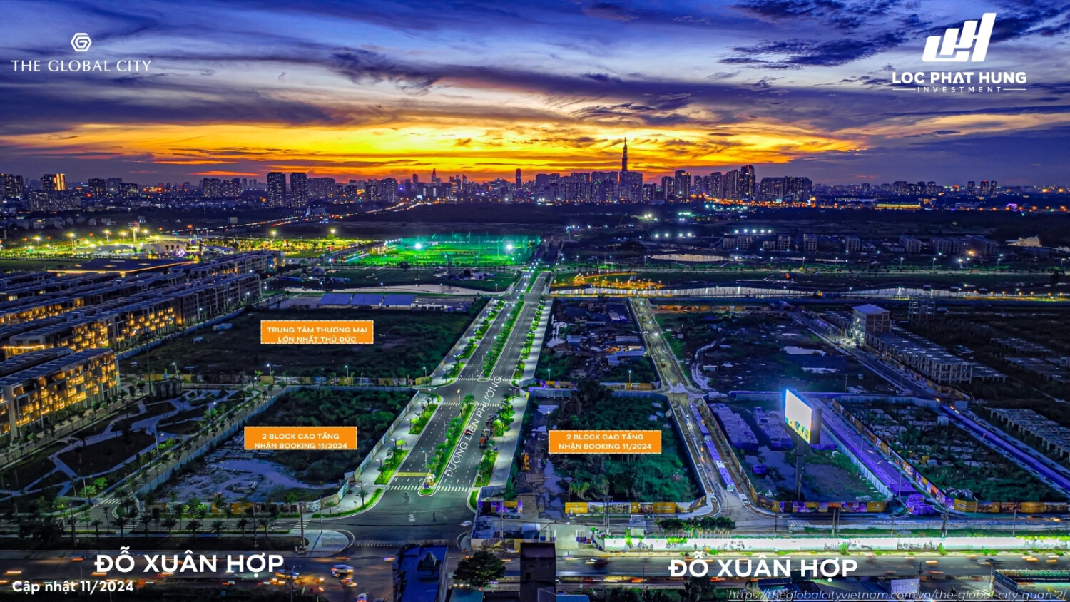 Phối cảnh đêm rực rỡ tại The Global City, nút giao Đỗ Xuân Hợp và đường Liên Phường nhìn về Landmark 81.